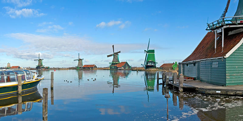 Travel back to the 18th and 19th centuries and discover the clog warehouse, cheese factory and bakery museum of the Zaanse Schans. This unique part of the Netherlands is dotted with wooden houses, mills, barns and workshops.