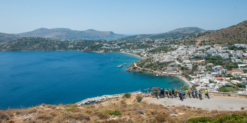 Our tour leader then led us to a hidden harbor tucked between the mountains. Some of us went for a swim, while others enjoyed a snack of gyros as they sat by the water. Just when we thought the views couldn’t get any better, we cycled to a lookout point high above the sea, where we could see that same little harbor far below.
