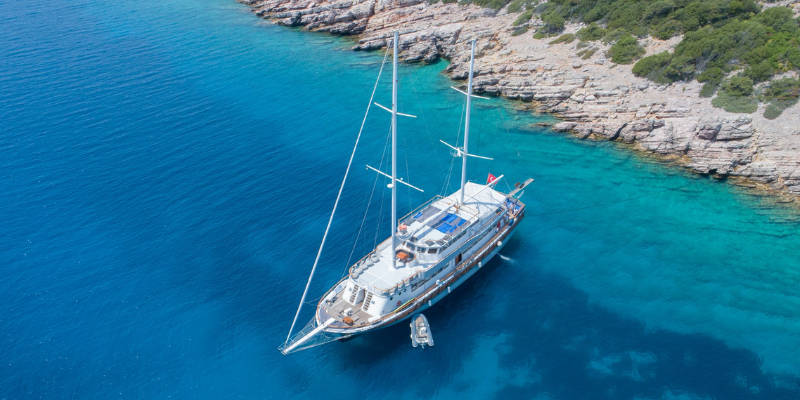 On the second day of our tour, I woke up early and stepped onto the deck just in time to watch the sunrise. The crew was already up, preparing breakfast, and one of them handed me a cup of coffee. As the harbor of Bodrum slowly came to life, breakfast was served on deck. When the engines finally started, a sense of excitement filled the air: our adventure was officially beginning.