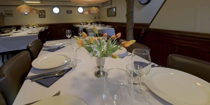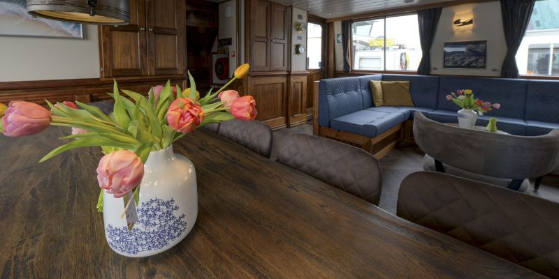 After buying the ship, Marnik redesigned the interior completely. The goal wasn’t luxury for the sake of luxury, but comfort. More space. A proper bar. A separate restaurant area. And, above all, a cozy atmosphere.
