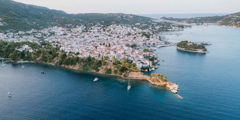 Many journeys through the Sporades begin on Skiathos, the most well-known island in the group. Easy to reach and home to over sixty beaches, it offers everything from long stretches of golden sand to small, hidden coves perfect for a quiet swim.