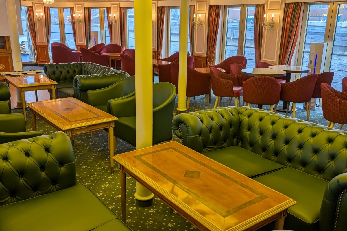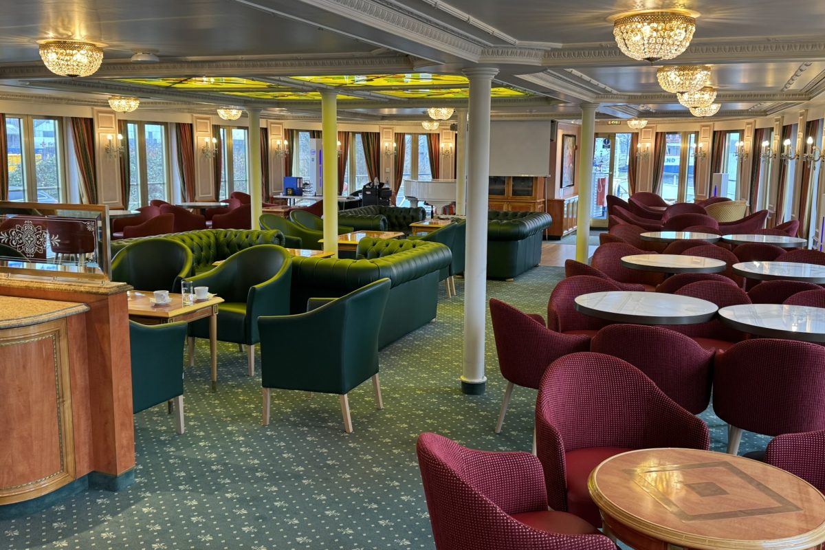 Upper deck: 26x 2-bed cabins with French balcony – floor-to-ceiling windows that can be opened.