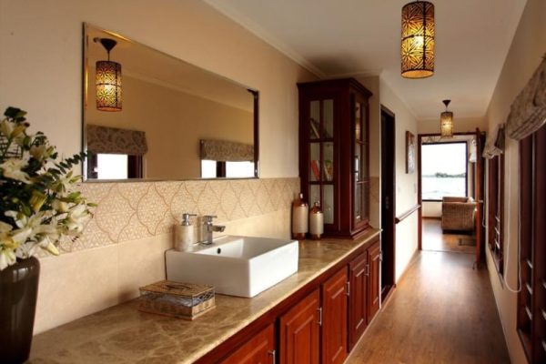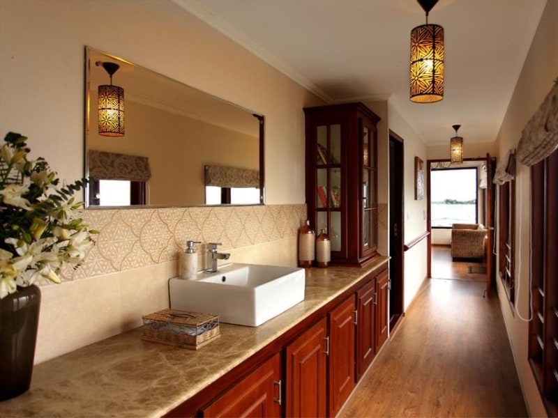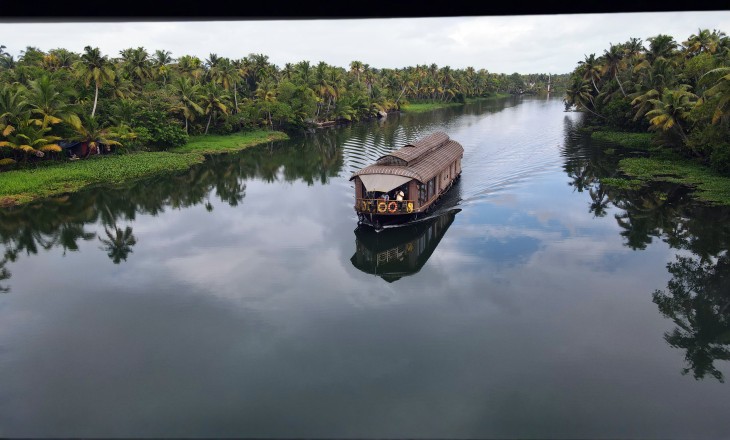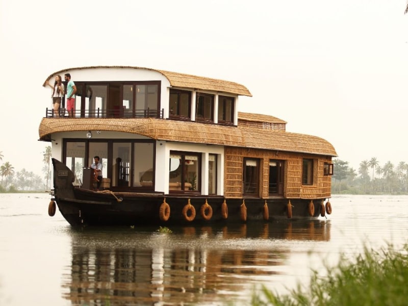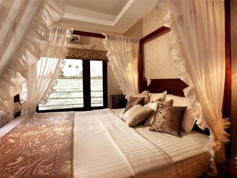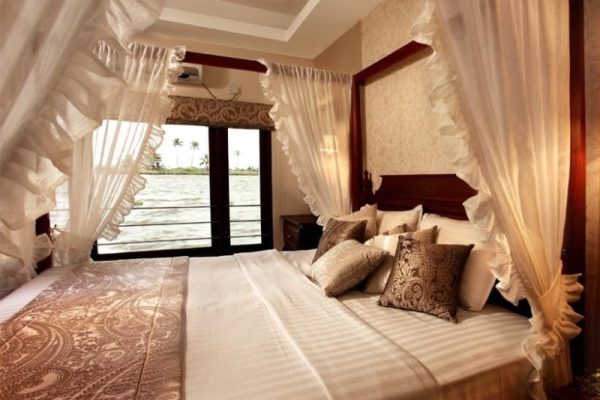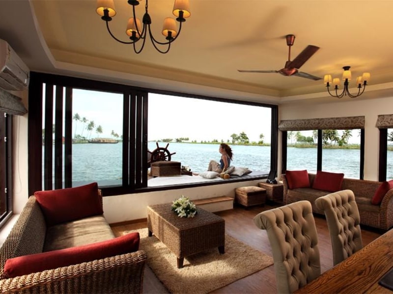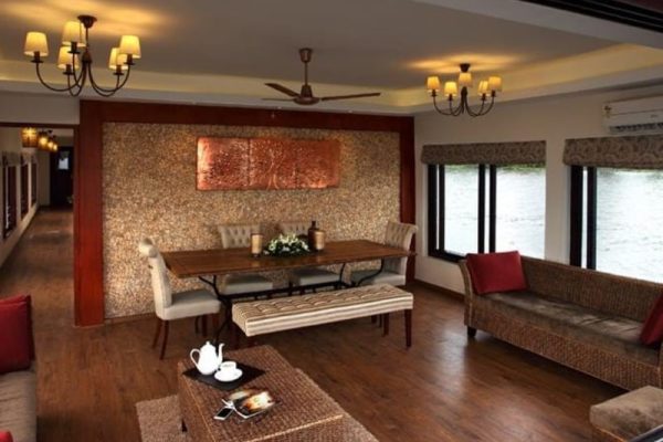 Step aboard your exclusive houseboat, where traditional thatched-roof design meets stylish, modern comfort. The spacious lounge is filled with natural light and tastefully furnished, creating the perfect space to relax. Enjoy cozy seating, panoramic windows, and air-conditioning – ideal for shared meals, great conversations, or simply unwinding as the peaceful landscapes of Kerala drift by….
