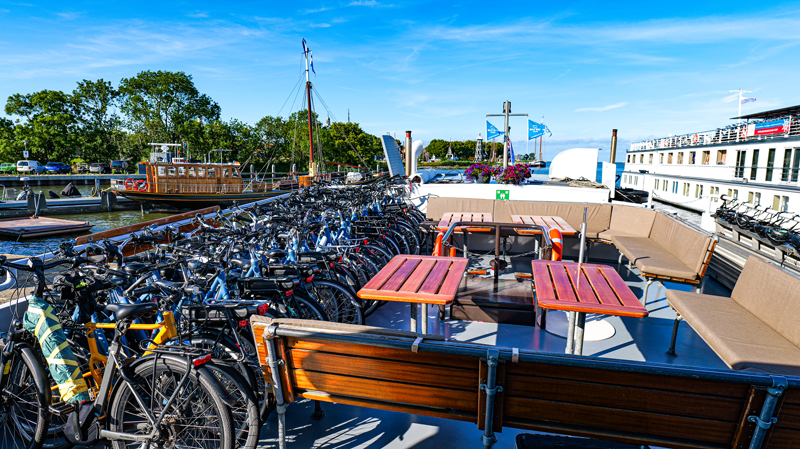 Step aboard the Lena Maria, an elegant and warmly furnished 45-meter motor passenger ship, specially designed for unforgettable sailing and cycling holidays. This premium vessel combines the comfort of a luxury cruise ship with the personal atmosphere of a boutique hotel. Thanks to its modest size, the Lena Maria can dock in the most picturesque small harbors – often right in the heart of historic towns – offering you a new scenic backdrop every day. For example, the Lena Maria runs the Boat Bike Tours cycling cruises between Amsterdam and Bruges, the Hanseatic Tour and the Discover Friesland Tour, the favorite of the ship owner.