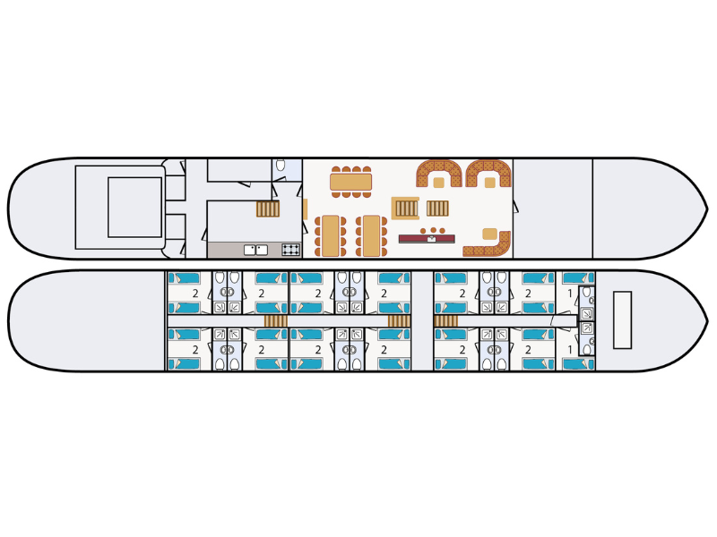 2025: During the unguided trip, 2 single cabins (9 m²) are also available with 1 bed and with the same facilities as above.