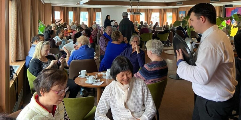 On a crisp Sunday after the close of our sailing season, the ship De Amsterdam set off once more. But this time, it wasn’t our usual travelers on board. Instead, we welcomed 100 elderly guests from all corners of Amsterdam for a special day of sailing, stories, and song, all completely free of charge. Many of these guests live alone or with limited social interaction. Through partnerships with music program Tour de Chant and the Amsterdam Public Library (OBA), we reached out to seniors in neighborhoods like Molenwijk, Reigersbos, and Mercatorplein. TCA taxis brought them to the harbor, where our crew greeted them with warm smiles and a beautifully prepared buffet.