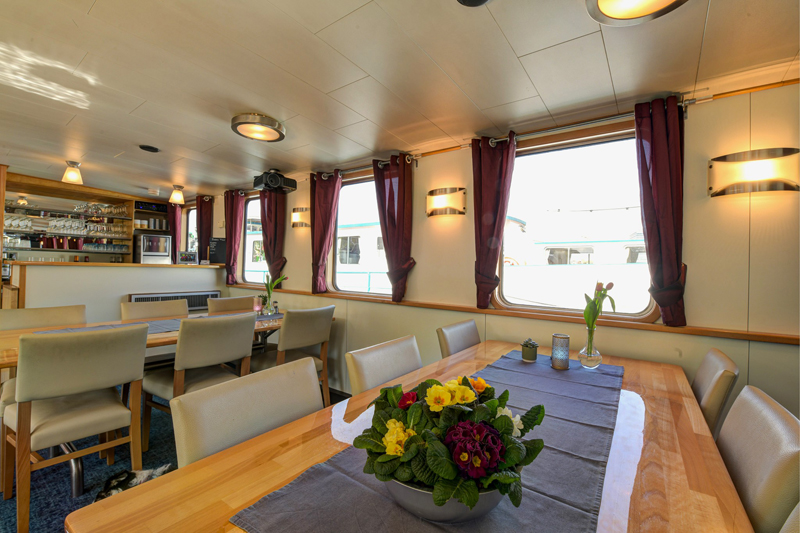 In between cycling excursions, you cruise along with the ship, which travels to a new destination every day. You dine, sleep and eat breakfast on board. You’ll receive a packed lunch every day, and you can usually choose between a longer or shorter bike ride. It’s also possible to spend a day on board if you like. There are rental bikes on board, but you can also bring your own if you mention it when booking (not possible on Fleur).