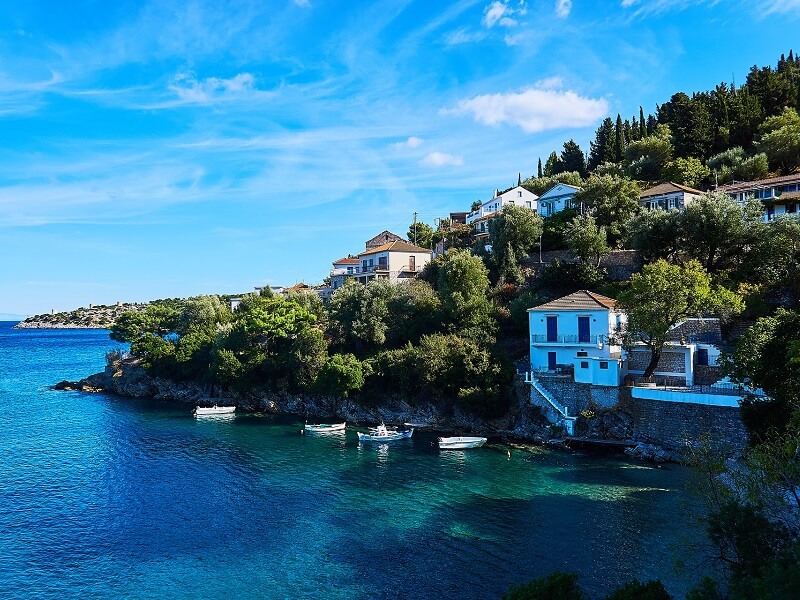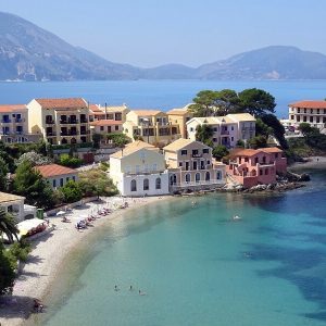 After breakfast we start with a short tour to a waterfall nearby Nidri. With a bit of luck enough water will tumble for us to have a refreshing swim. Afterwards we continue on quiet roads over the hills via Siyros to the picturesque harbor town of Sivota. Here we board the boat and cruise to Fiskardo on the Island of Kedalonia. Situated on the northern tip of the island, the harbor town enchants with its colorful houses and many cafes and bars along the lively waterfront promenade.