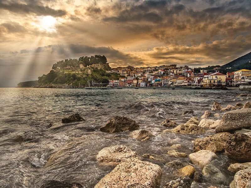 Cast off! In the morning we cross over to Sivota on the mainland of Greece. There our first cycle tour starts and leads us to Parga beautifully situated below a Venetian fortress which towers over the old town. Here the boat awaits us to take us on a long cruise to Nidri on Lefkas Island. On our way we pass a witty swing-bridge which connects Lefkas with the Greek mainland. You spent the night in the lively harbor of Nidri.
