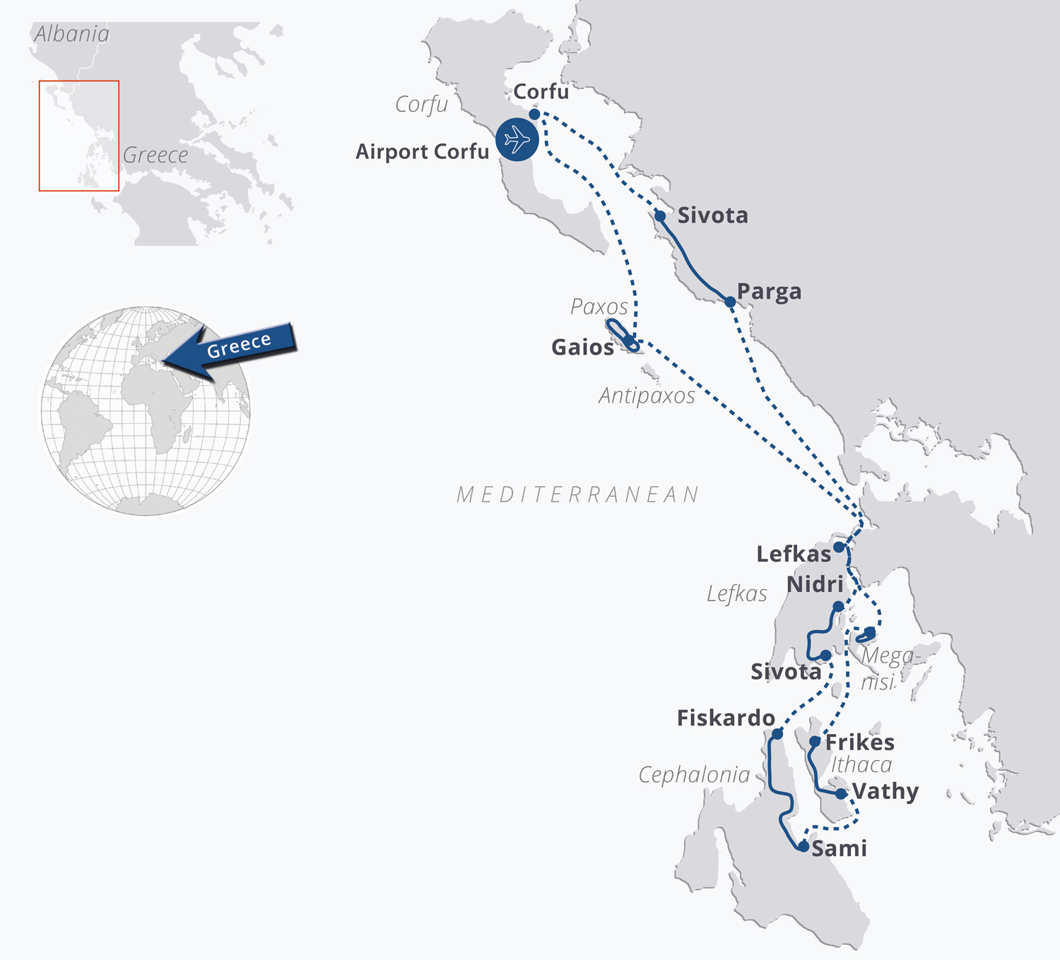 Discover by boat & bike the famous island of Ithaca which is said to have been the home of Odysseus, the unforgettable green bird sanctuary island of Lefkas, the fantastic mountain world of Cephalonia and the beautiful olive woods of the small island of Paxos.