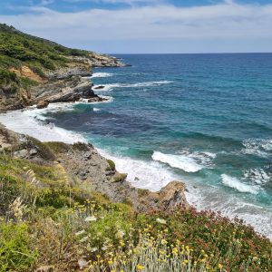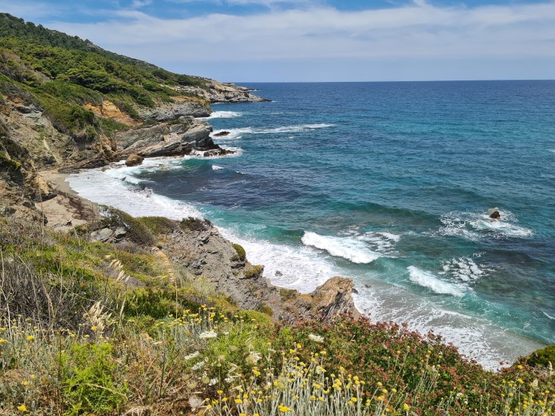 In the morning, your boat will take you on a long crossing to Alonissos. On the way, you will make a swimming stop in a beautiful bay. Once you arrive in the port of Patitiri, you will go on your first short bike tour on Alonissos in the afternoon, where you can familiarize yourself with your rental bikes. This warm-up tour takes you along quiet roads up to the enchanting old island capital of Palaia Chora, which you then explore on foot. Countless photo opportunities await you in the winding alleyways and you can enjoy the typical Greek island atmosphere during a coffee break in the shady main square. Then make your way back to Patitiri, where you can round off an eventful first day with a delicious dinner in one of the tavernas located right on the beach.