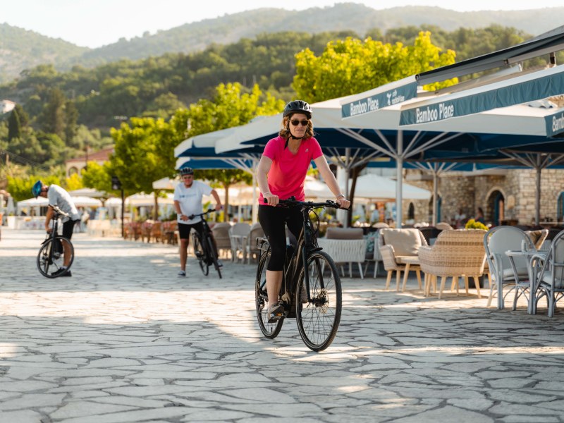 Your journey continues by boat to the Pelion Peninsula, a region of breathtaking beauty. Alongside Skopelos and Skiathos, Pelion served as one of the main filming locations for Mamma Mia. Todayβs tour begins in the charming fishing port of Agia Kyriaki and takes you past the mountain village of Trikeri, all the way to the bay of Alogoporos. Here, itβs time to give your bike a break and hop on a water taxi to the car-free islet of Palaio Trikeri. This enchanting little island spans just 4.5 square kilometers and is best explored on foot. You can visit the Greek Orthodox Monastery of the Virgin Mary or simply relax and swim at one of the islandβs quiet beaches. Later, the water taxi brings you back to Alogoporos, where your e-bike awaits for the final stretch of the day. Youβll ride back along the coast to Agia Kyriaki, where youβll spend the night.