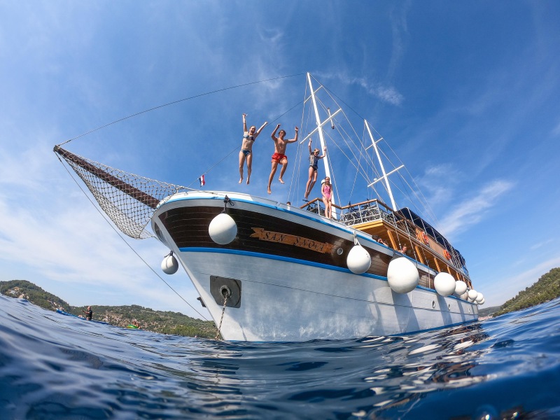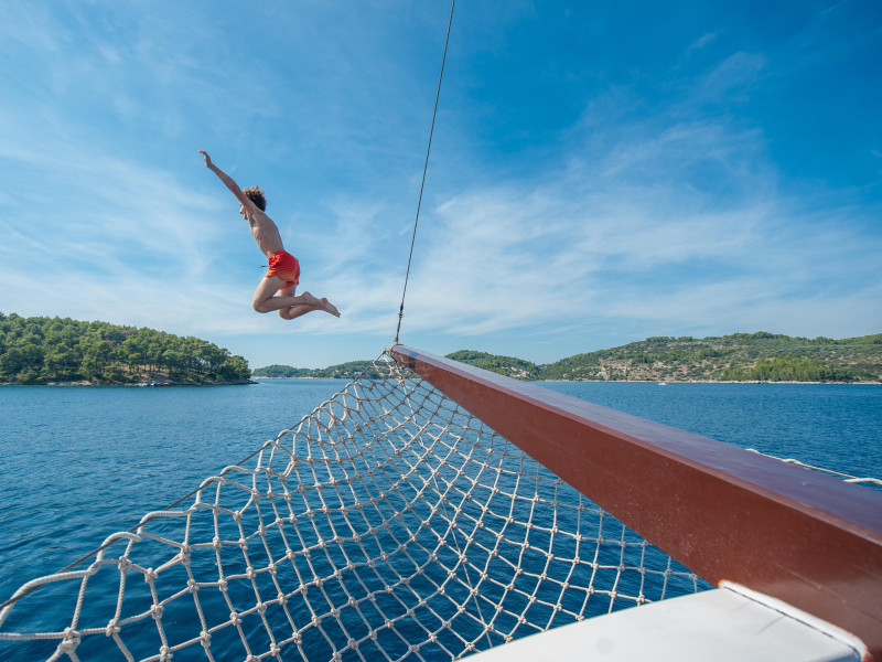 Decide each day anew whether you would like to go for a bike or a hike, go rafting or rather stroll leisurely through the unique small harbour towns of the Adriatic – or simply spend the day relaxing on board. This is indeed a pleasant way of exploring Southern Dalmatia, possibly Croatia’s most attractive coastal region. A well-informed tour guide who can always point out various possibilities of creating an active or a relaxed holiday accompanies you. Local stories and legends and the country’s cultural treasures – most of which are protected by UNESCO’s World Heritage program – bring Croatia’s eventful history to life. The highlight of our Multi-Adventure Cruises is the opportunity to jump directly off the ship into the sea for a swim.