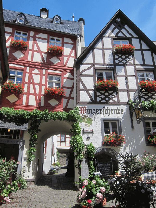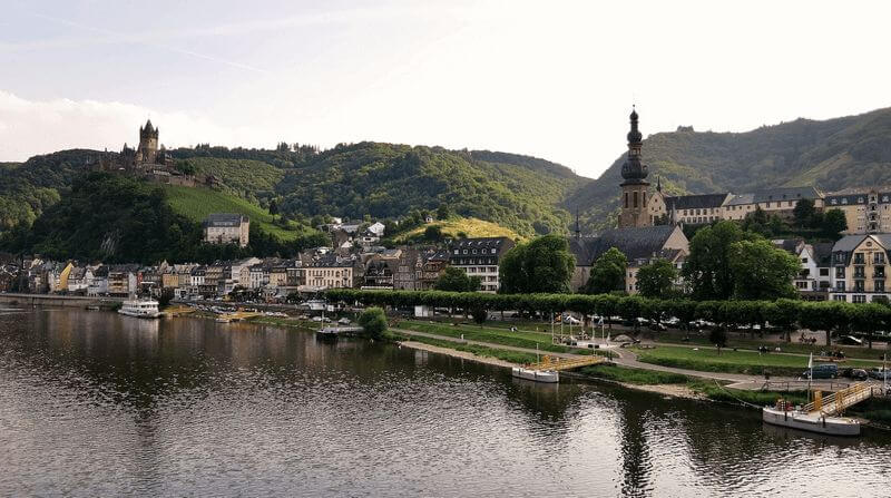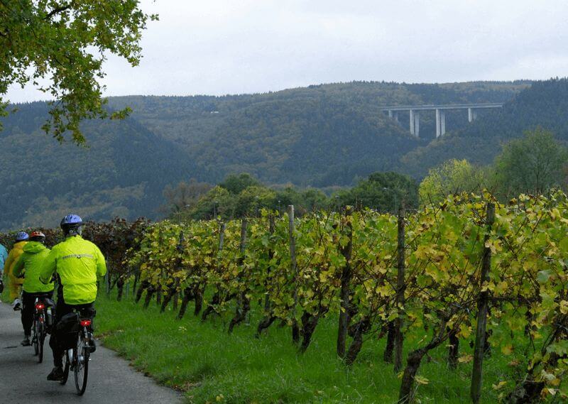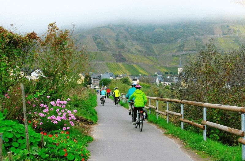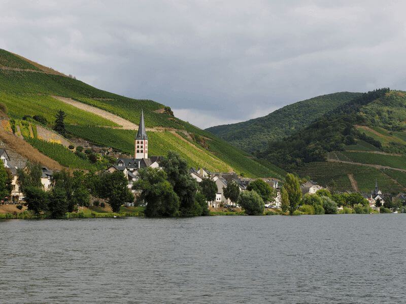 Following breakfast, youβll cycle to Beilstein, one of the best-preserved historical villages on the Moselle. The ruins of Castle Metternich sit towering above the village, and youβll have the opportunity to explore them. After leaving Beilstein youβll pass Europeβs steepest vineyard β with slopes inclining up to 60 degrees β at Bremmer Calmont. Todayβs tour ends in the wine village of Zell on the Moselle, well known in the industry for the wine Zeller Schwarze Katz. In Zell we recommend taking the opportunity to get to know the good wines of the Moselle valley.