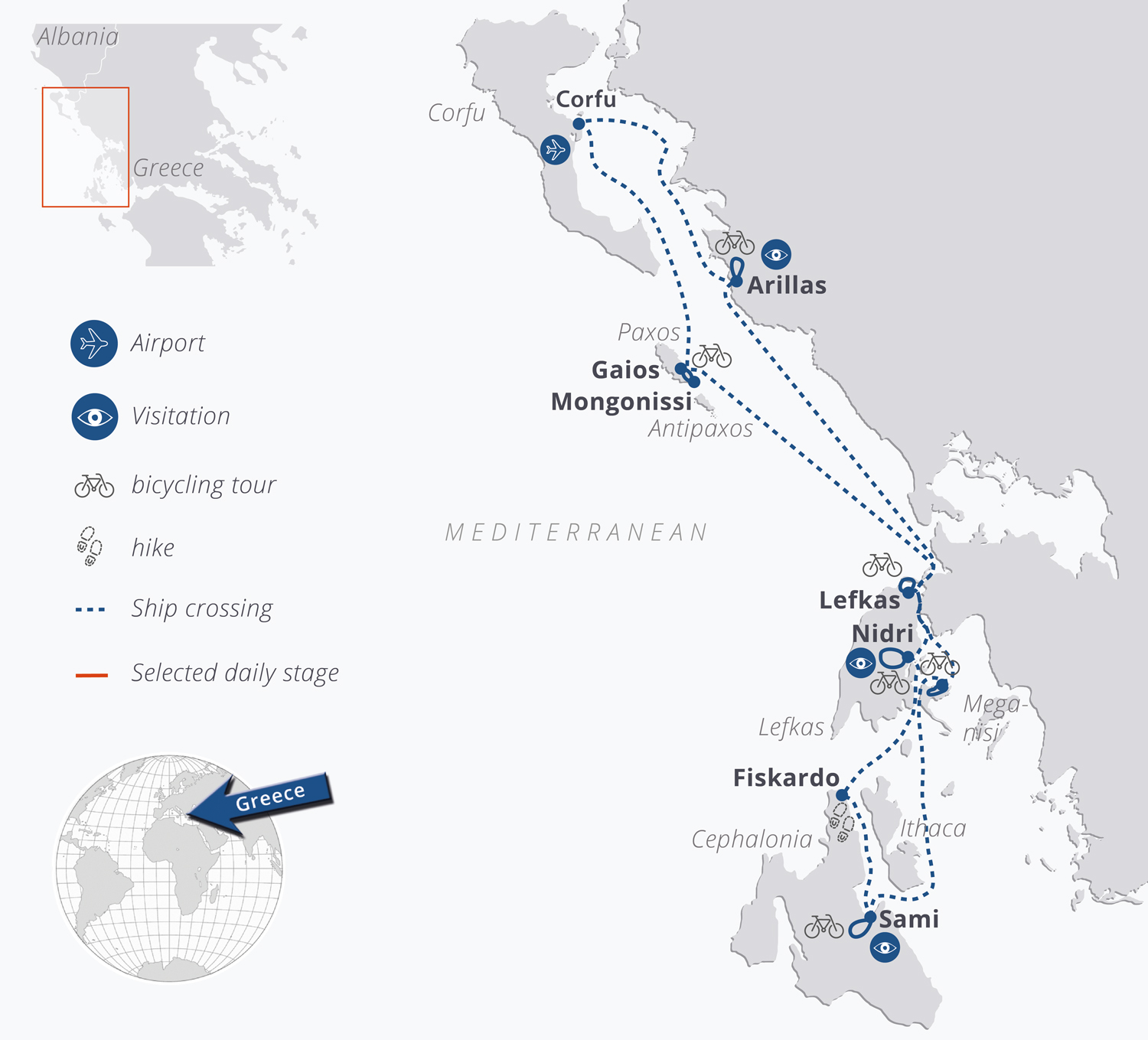 Day 2: Corfu Island – Paxos Island (aprx. 4,5 mi. / 7 km by bike)