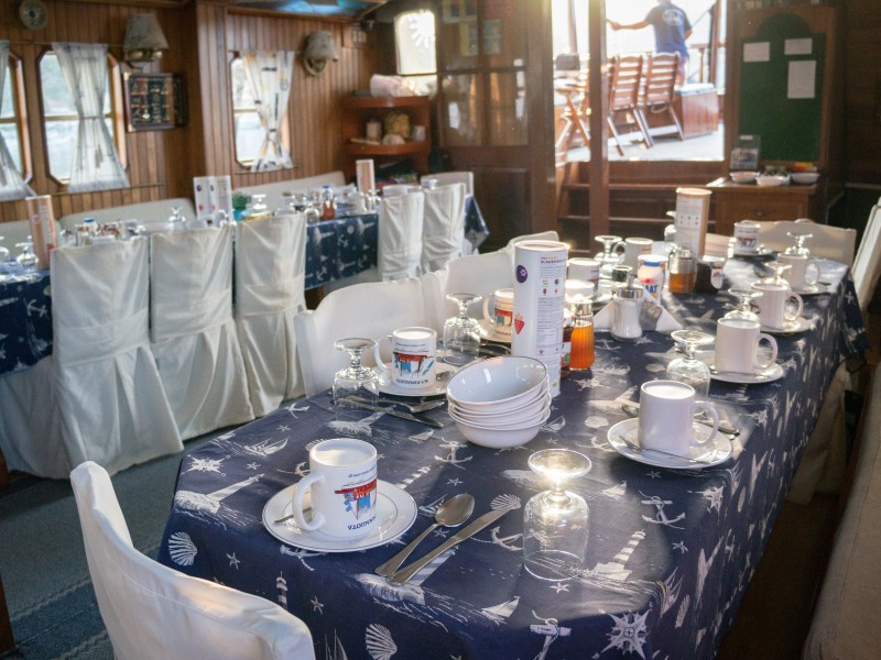 Catering: The on-board chef is a member of the crew and prepares the breakfast and one or two warm meals a day. The catering consists of 2 x full board and 5 x half board and starts with the dinner on the arrival day and ends with the breakfast on the departure day.